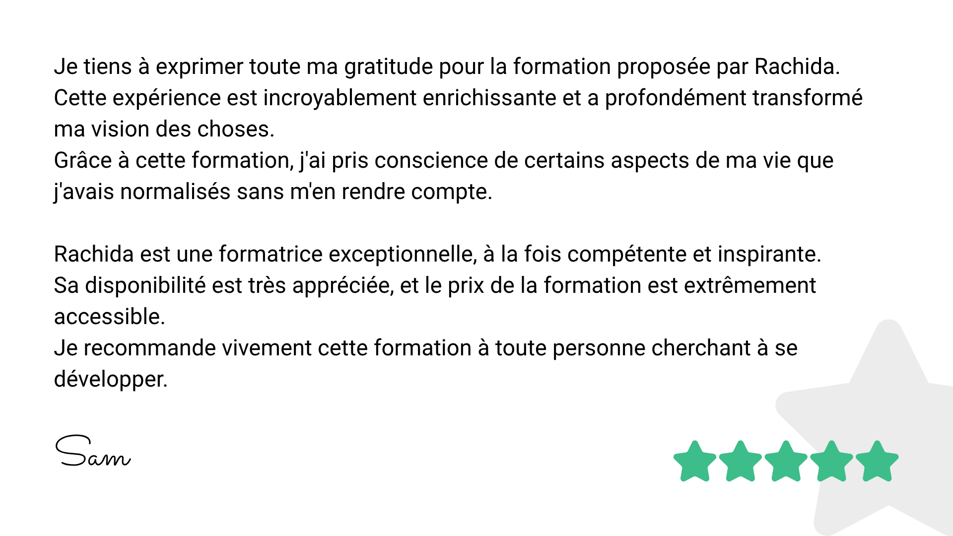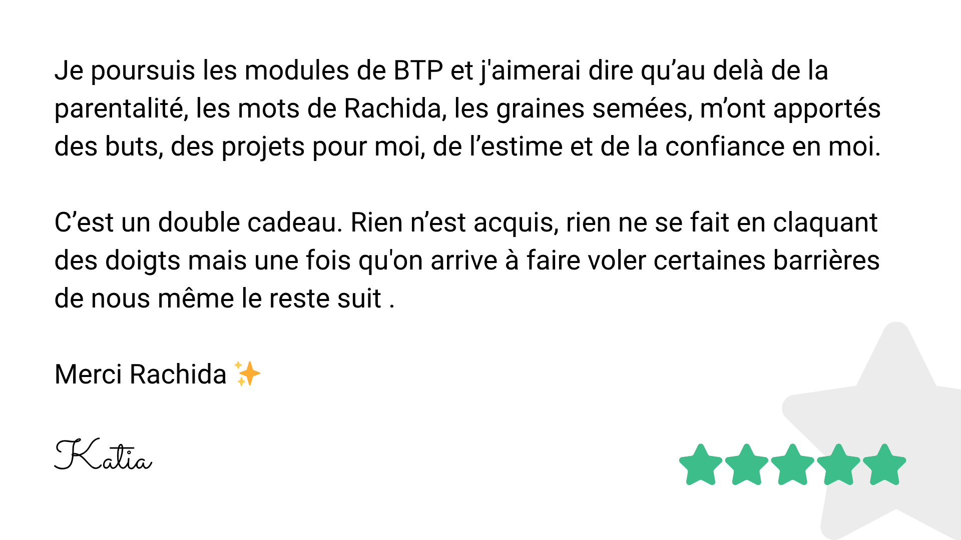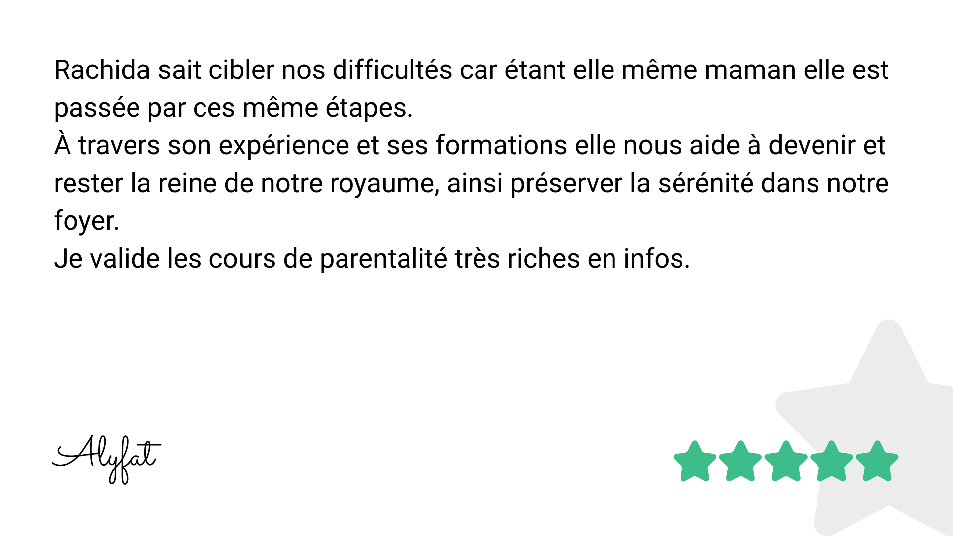 C’est un moyen de démolir les idées fausses dû à ta propre éducation, nous reconstruirons ensemble des fondations solides pour te positionner en maman FERME et BIENVEILLANTE, et enfin tu bâtiras une relation saine avec ton enfant, une relation consolidée par l'amour, le dialogue, le respect et la confiance mutuelle.