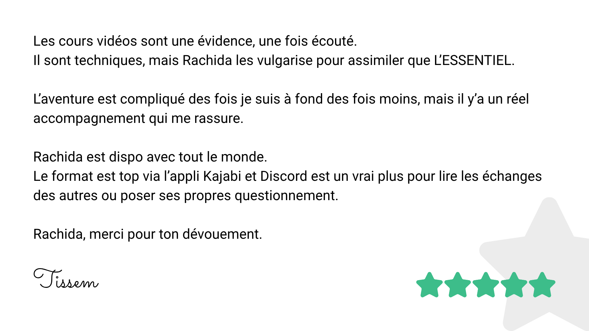 Rachida est disponible tous les jours sur Discord pour répondre à tes questions.